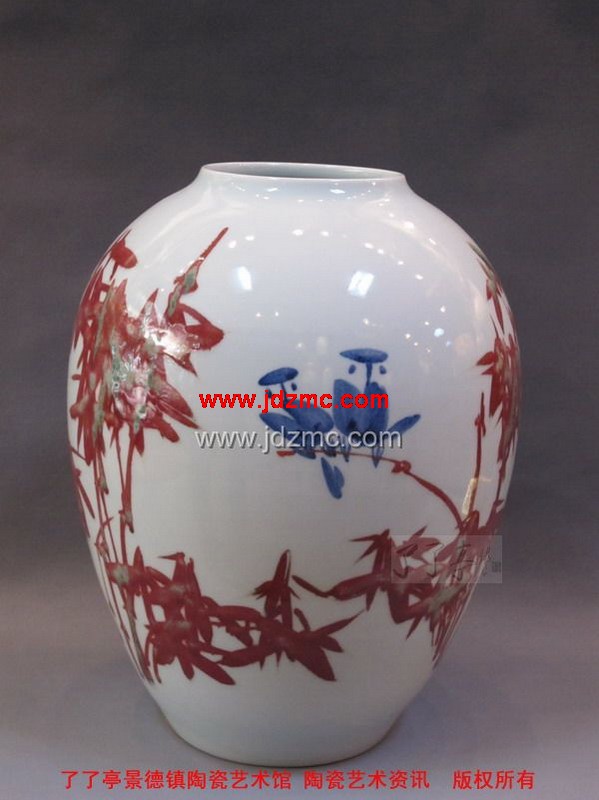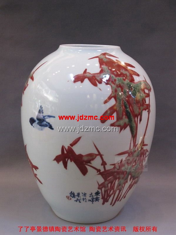 李云峰老师最近受到了很多外地画家的思想冲击,开始发挥釉里红写意的绘画特征效果。其成果汇报如下: