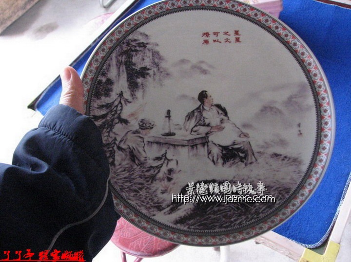 这是一件早期的星星之火可以燎原的贴花瓷盘,从盘体看时间跨度可能过了文革时期。