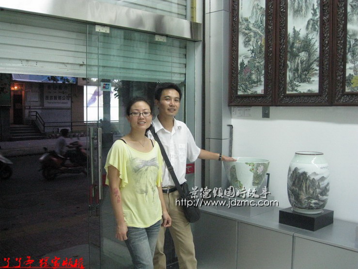 了了亭景德镇店里面有一个彭松老师的古彩瓷瓶,趁着彭松和他妻子来游玩的时候拍了个合影。