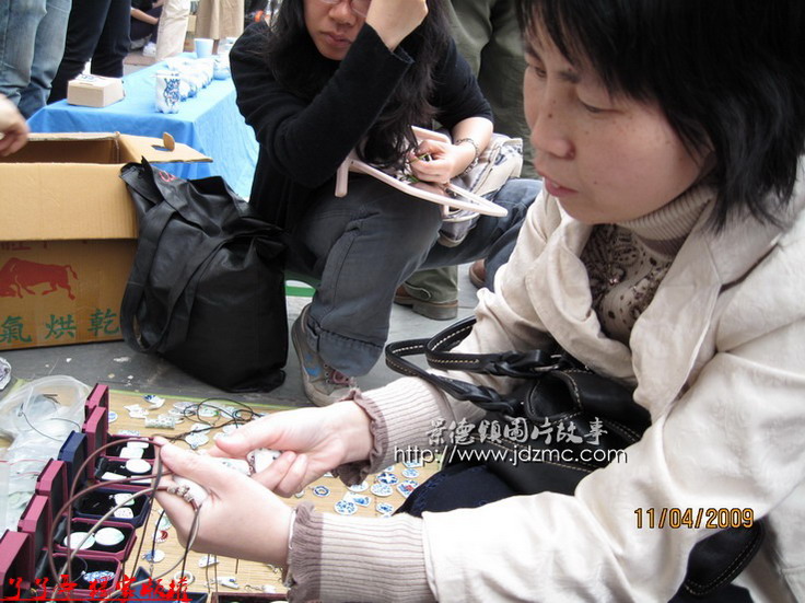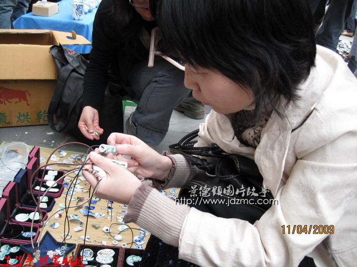 李磊颖老师在陶艺小摊上购买了不少陶瓷首饰,制作者是鲁美的学生。