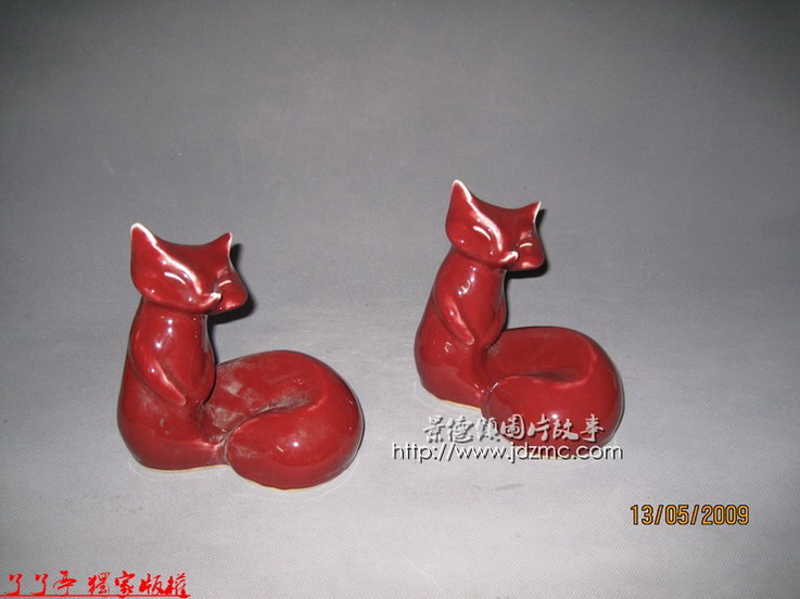 淘到了两个宝,小狐狸,说是姚永康的设计,开模制作的,真假没有去论证,但是作品设计不俗,铜红釉,灌浆胎。