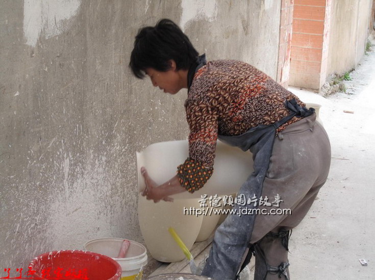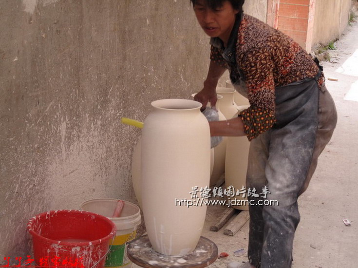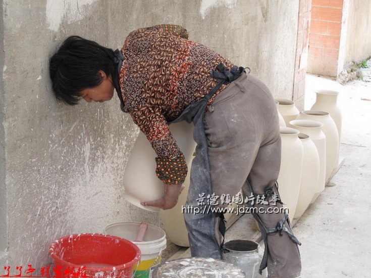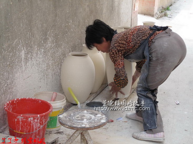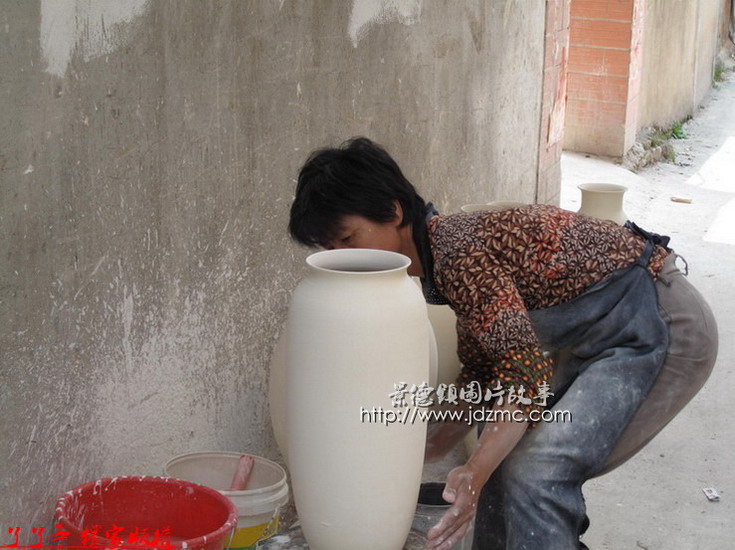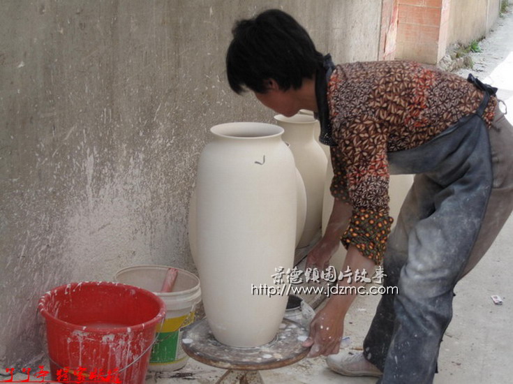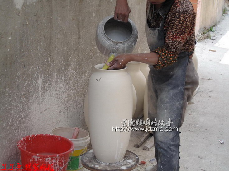 大瓶子里面那些白釉是如何施釉上去的,通过以下组图您就完全了解了。