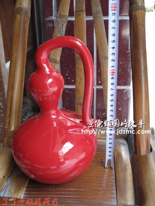 景德镇红釉的葫芦有几种,一种是纯红釉的,一种是红釉加彩,一种是红釉加颜色釉。