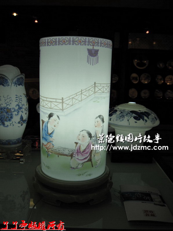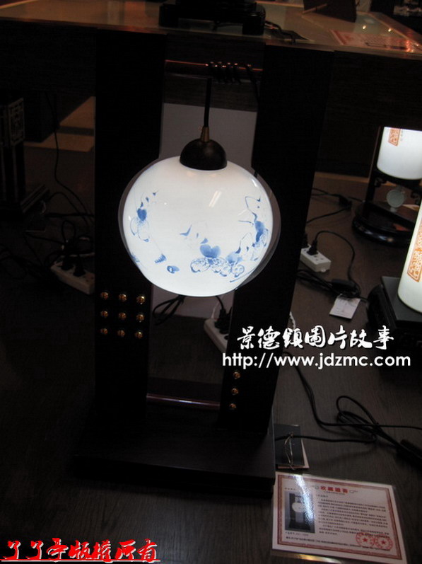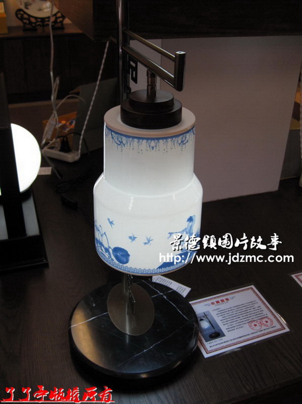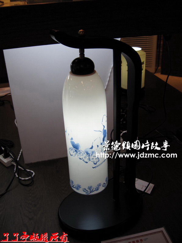 景德镇高档的瓷器台灯是一个空缺的市场,以前一直是由名人绘制薄胎皮灯来填补,现在已经开始批量生产。