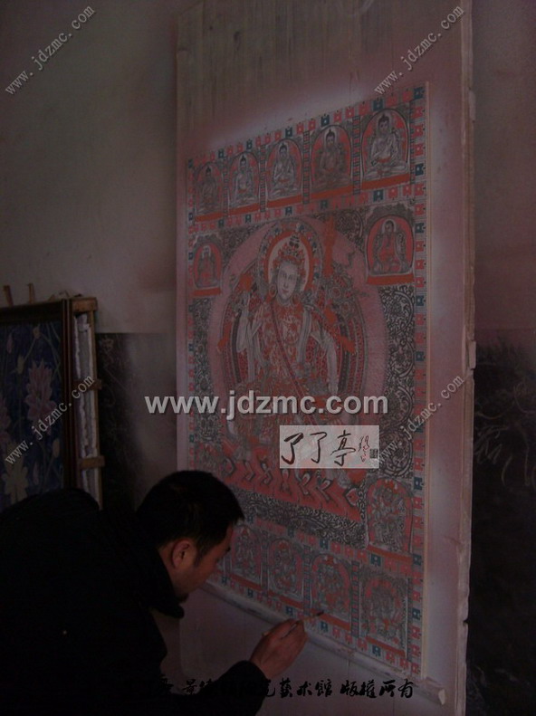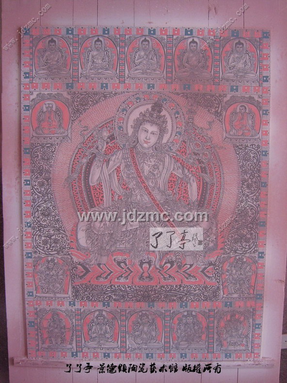 这是杨杰烧制高温色釉唐卡之前的实景图片,在没有烧制之前,我们看到的都是一些灰扑扑的色彩,但烧制后会在窑火之中有着各种神奇的变化。