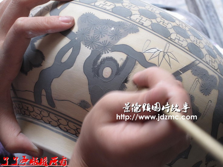 这是五良大甫的制造实景,猴子的毛是一笔一笔的撕出来的。