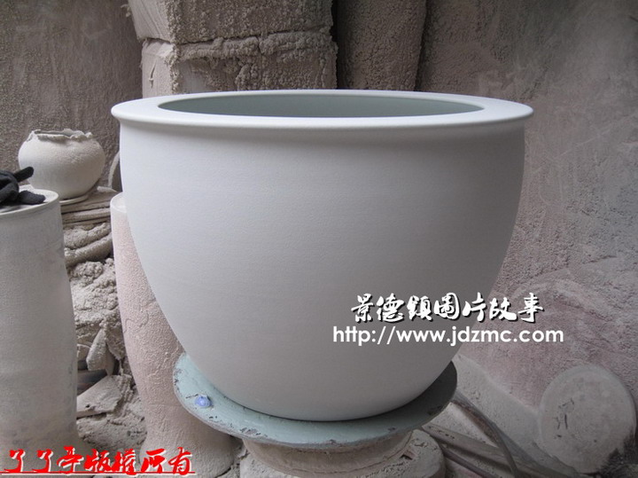 这是刚刚吹釉吹好的一件高温色釉绿木纹500件罗汉缸,做好了,有个朋友会拿跑,做的出问题了,自己留下种树。