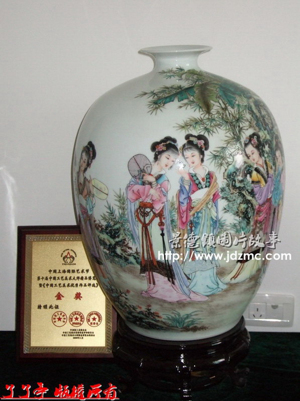 景德镇陶瓷中唯一老少皆宜的就是工笔的画面,它可以是人物也可以是山水等等,大凡只要是工笔的往往就是招人喜爱。