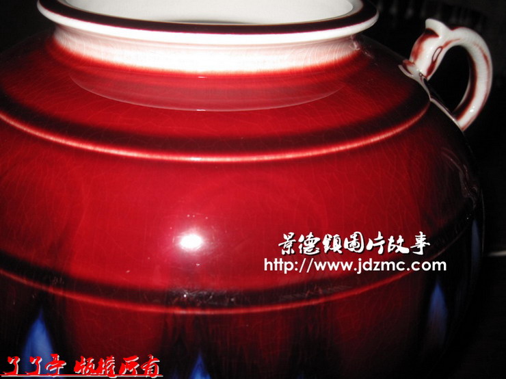 宝石红的本身就是郎红的极品,在最美处的釉面上几乎不见郎红的痕迹,变成了清澈透明且厚度较高的色釉效果。有这样的宝石红几乎是屡窑难得其一。
