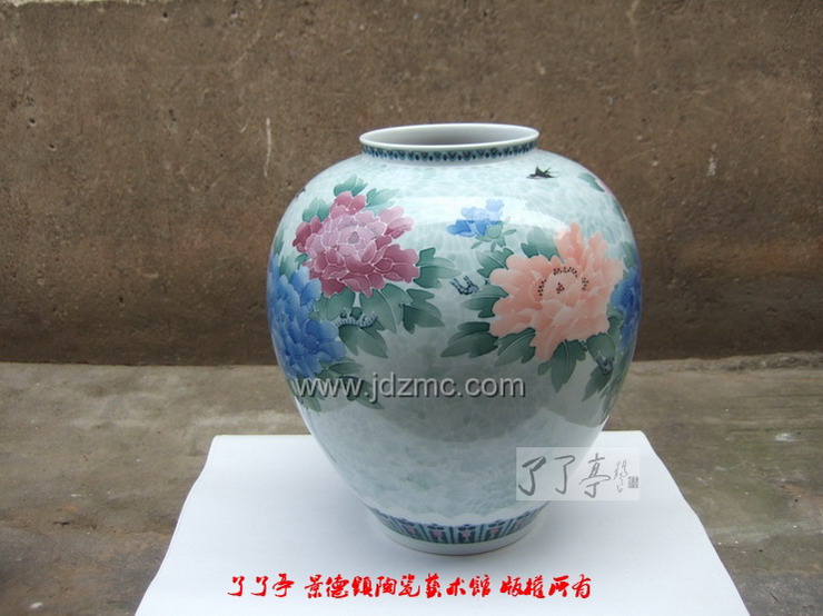 釉下五彩,古时称窑彩,是经过1320度左右的高温窑烧制而成的,产品具有釉面光滑、色彩淡雅、水份感强、永不变色等特点。由于其制作工艺复杂,成活率低,产品市面较少,精品较为珍贵,尤其工笔重彩就更为稀少了。其作品深受国内外收藏家们的珍爱。