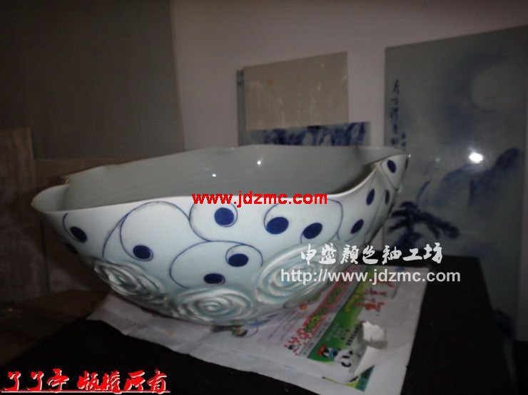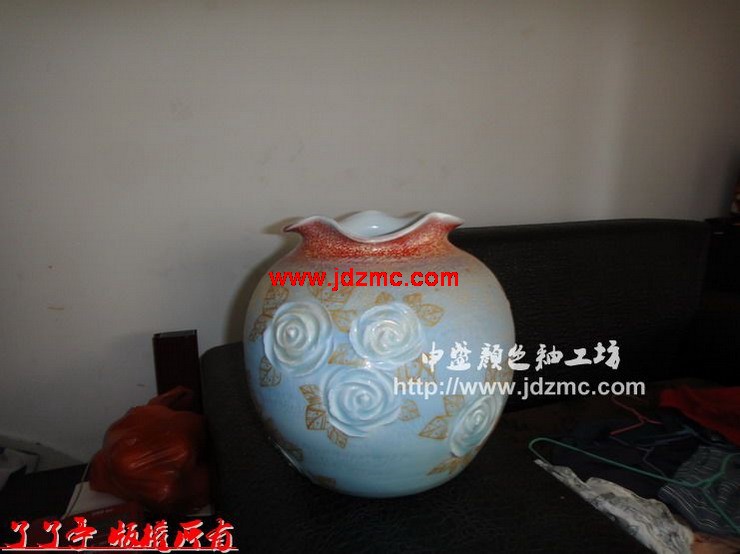 上一次吴锦华老师制作的两根颜色釉作品他个人感觉还没有达到完美的效果,最近两天进行了斗彩。