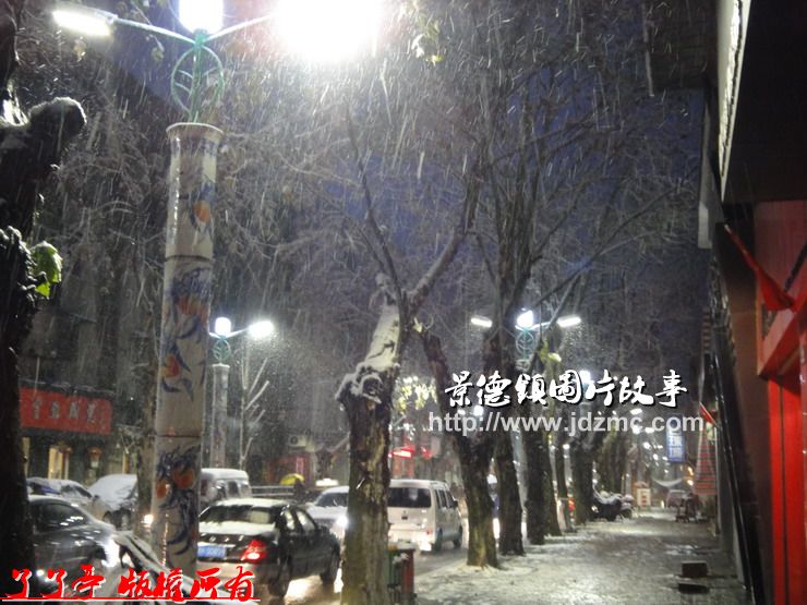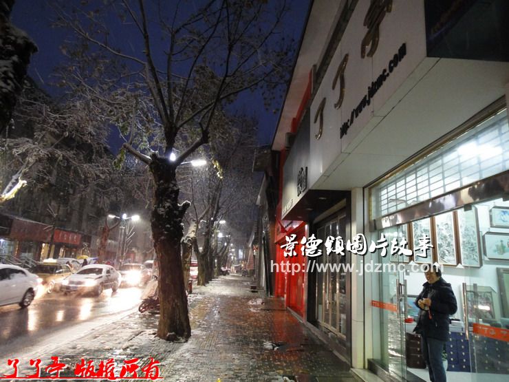 景德镇这个城市,这一个月都见不到一点冬天的迹象,我还穿着背心打篮球。然而,转眼间,气温陡降,大雪来临。 图为:景德镇大力改造的莲社北路高档陶瓷一条街的街景。