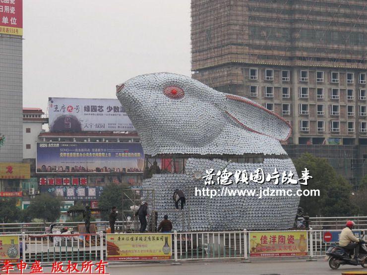 从前些年开始,每到农历新年,瓷都市民都可以在人民广场看到一个由瓷盘、瓷杯、瓷碗等搭成的生肖形象,这已经成为了景德镇迎接新年的一大特色,向外界展现千年“瓷都”的活力和深厚的文化底蕴。兔年春节临近,景德镇的能工巧匠又一次将“年味”和“瓷文化”相融,一座由瓷盘、瓷杯、瓷碗组成的瓷兔即将搭建完成,为我市营造出浓郁的节日气氛。