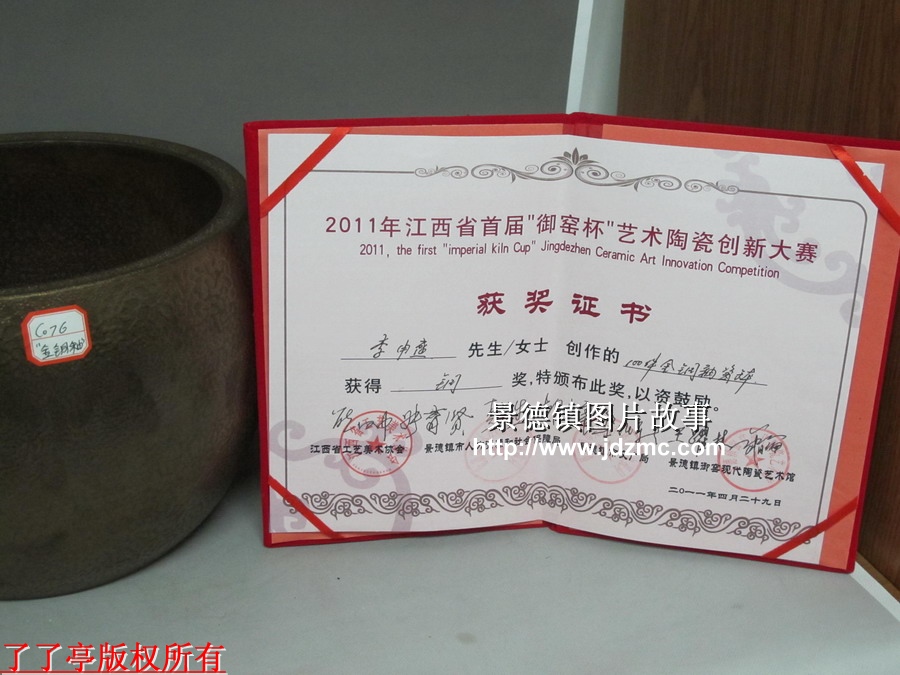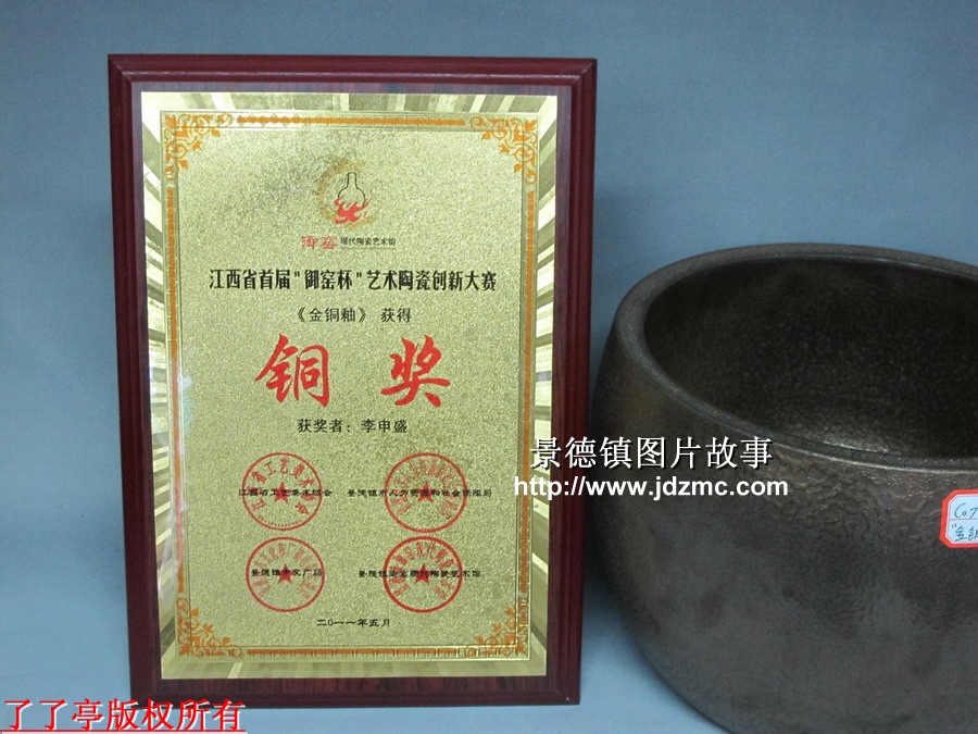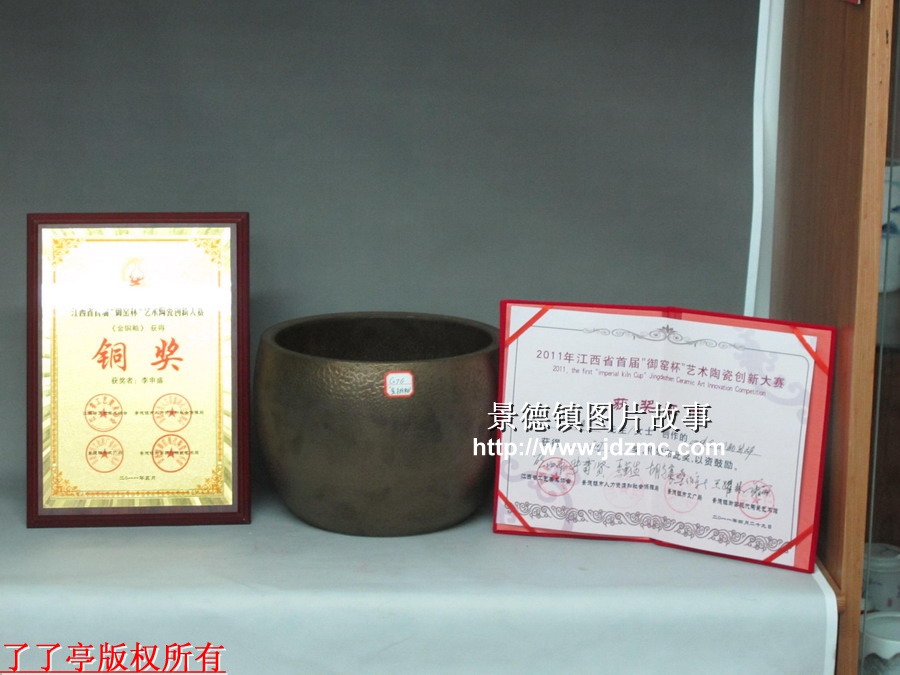 这一次比赛,送了件颜色釉的作品,应该说可能是比赛中唯一的一件参赛型的单色釉作品,得了个铜奖。