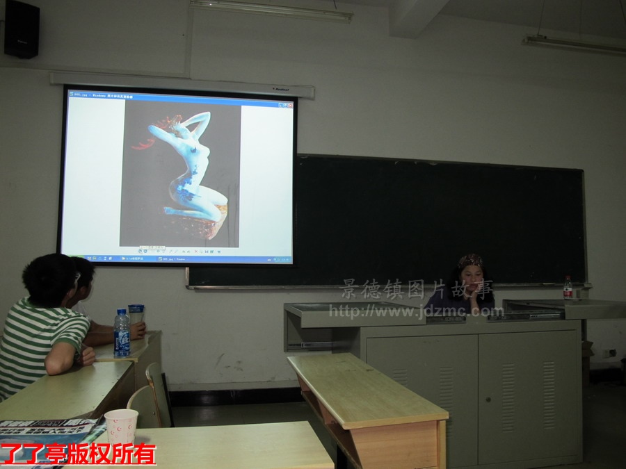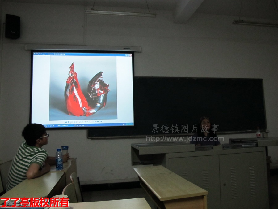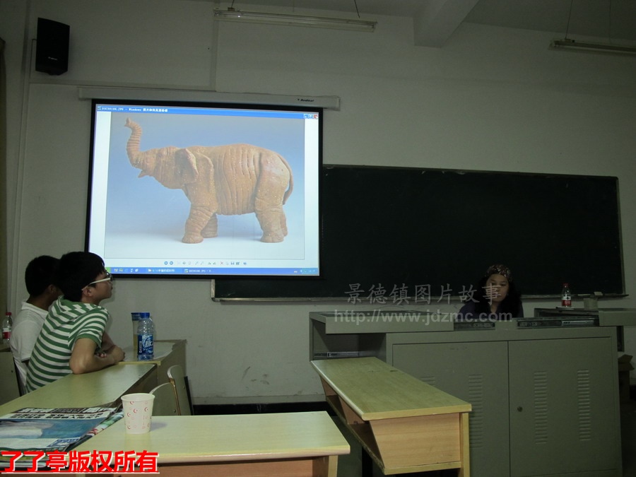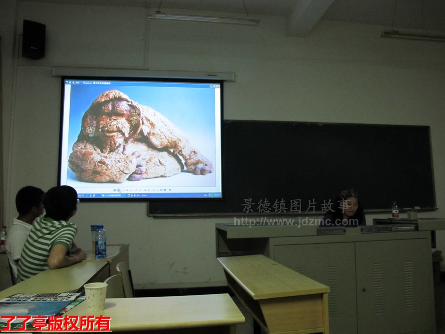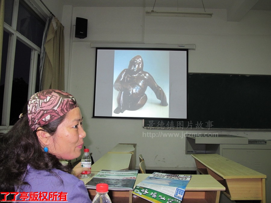赵坤在景德镇高等专科学院给学生讲解她的陶瓷雕塑艺术创作讲座。