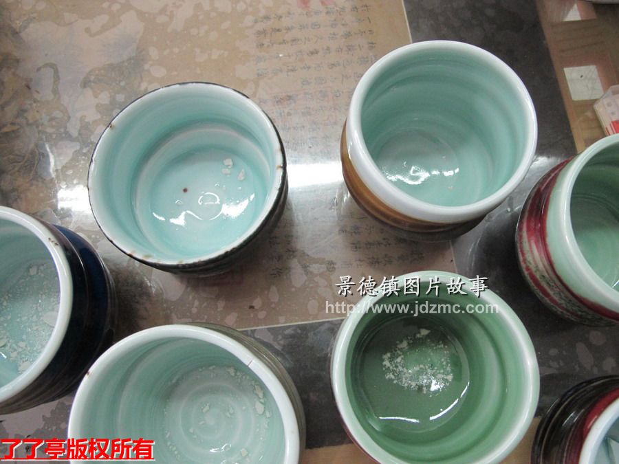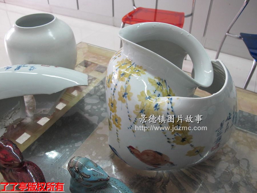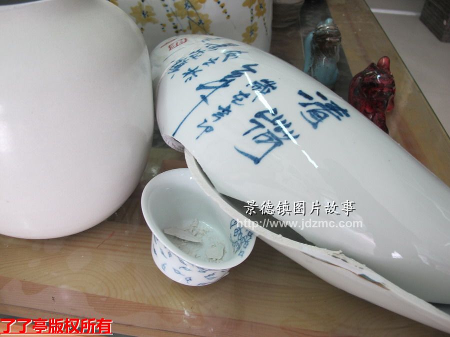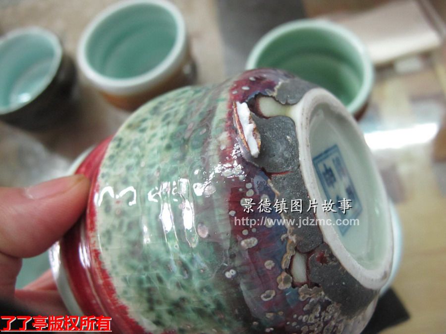 炸窑遇到了两次,一次是我的坯炸了,毁掉了周围别人的东西,这一次是别人的坯炸了毁掉了我的东西。我炸窑的那一次只是一个中等坯,只是小范围的喷射状,炸坏的不多,害的我赔偿了200块。这一次别人是从上层到下层每一层都有坯炸了,几乎整个窑的瓷器全部毁掉了。这一次炸窑的原因是作坊主的坯因为这一段时间景德镇连连阴雨,湿度过大,在还没有完全干透的情况下,马上入窑了,因为数量多,在每一层都有满窑几个,都是150件的坯,这一批批定时炸弹,在窑火升温过程中,因为气窑的升温都比较快,一般给排湿的时间不多,所以,入窑的坯一旦不干,和炸弹没有区别。于是这些150件坯在升温过程中陆续爆炸,呈喷射状,加上窑火带着残渣在窑炉里面流动,使得很多瓷器上面都有那种刺刺的感觉,如此整窑就废掉了。我此次事故之中损失了7个陶艺杯,也是朋友定的货的一部分,小龙的三个幸免于难。嗨,看哪个人可怜,没有叫他赔了。就我在哪里呆了一下,作坊主已经赔偿了1000多了,因为炸窑后,是不赔偿作品最终成品的价格的,只是赔偿相关坯的价格,加上一些釉的价格,画工呢,低档的画工稍微赔偿一下,高档画工就基本不赔偿了,比如今天宁勤征的几个瓷器也在这个窑里面,基本都废掉了。如果作坊主要陪,卖了他也赔不了了。我看宁勤征的哥哥在哪里很郁闷啊。