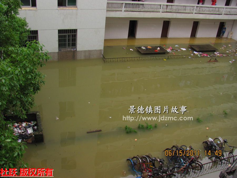 今天李磊颖的学生杜跃来了了亭做客,在他的相机里面看到了不久前水淹陶院的图片,于是拷贝了下来。这组图片还只是白天的情况,随着下雨的急剧,晚上,整个宿舍底层全部被淹没在水下。