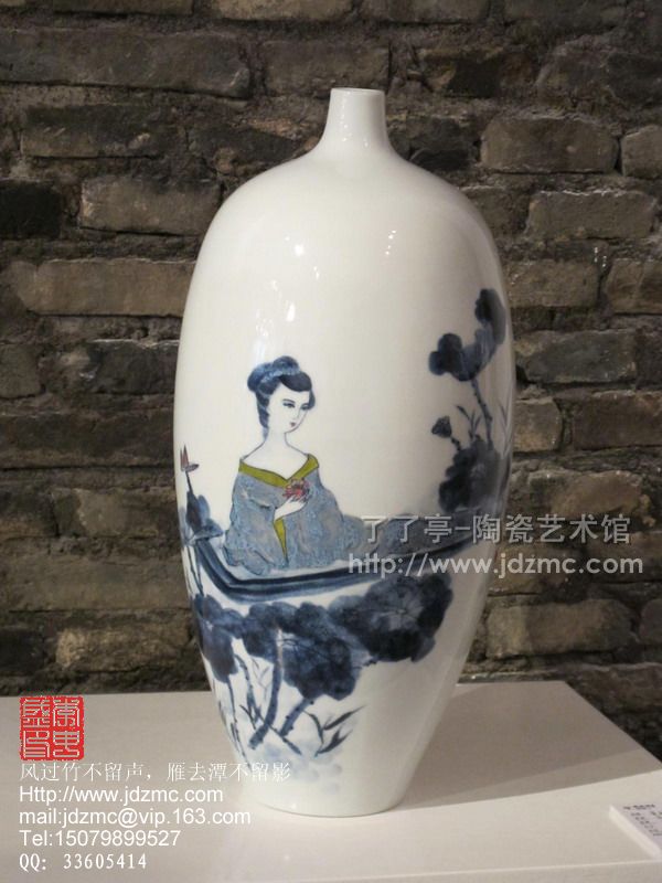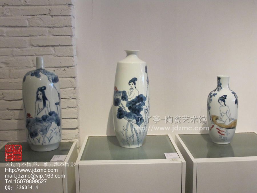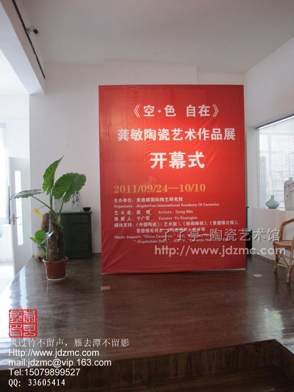 龚敏是一位从上海来的青年女艺术家,一到景德镇,就爱上了景德镇的陶瓷。在景德镇如痴如醉的学习过程中,她拜王锡良大师为师,也把能成为王老的学生作为了一生的信誉。在王老的淳淳教导之下,龚敏不但画艺增长,更为重要的是,学会了如何成为一位平凡的人,执着的画家。在她于国际陶瓷当代艺术中心开展之际,我作为嘉宾参加了她的开幕式,也看到了她为之在景德镇努力两年的结果。这个展览,是她的期许,是她的展望,更是她艺术的肯定与新的起点。了了亭 陈也君