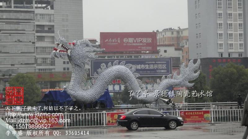 负责青花瓷龙建设的工程师吴新建表示,青花瓷龙长16米,加上扭曲长度一共26米,龙体最粗的地方达到1.5米,加上龙鳞后将达到2米左右,从地面到该龙龙须最高达8米左右。