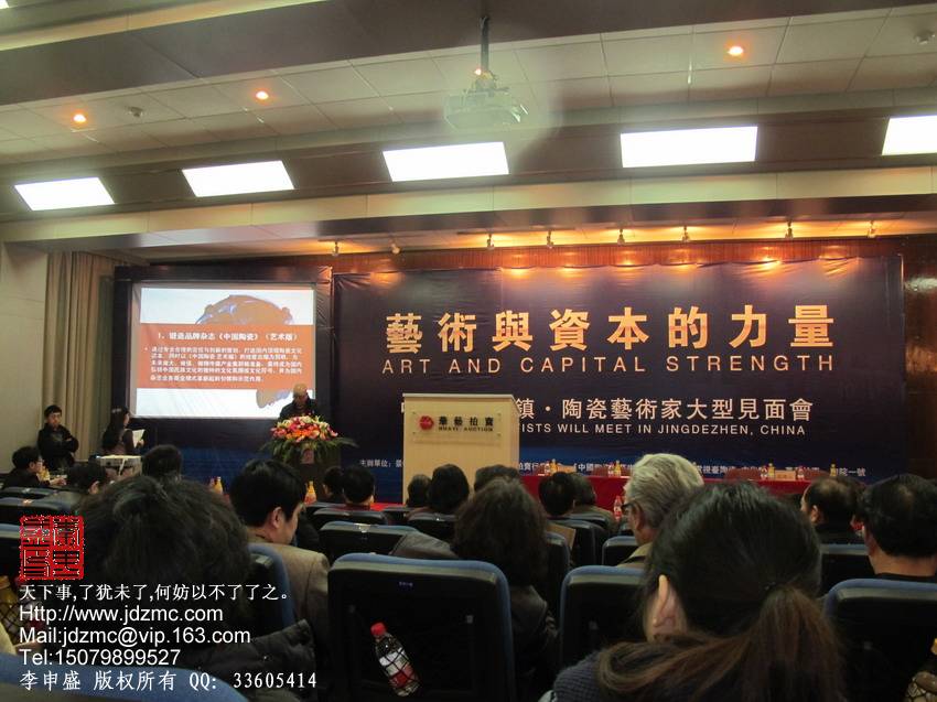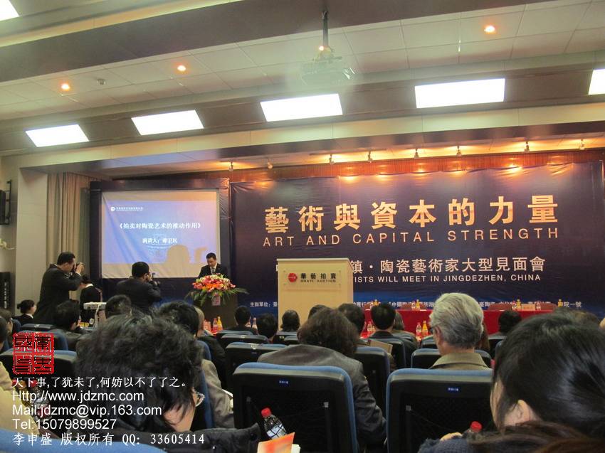 (转载于 中瓷网讯 杨玫)2012年3月18日下午,“艺术与资本的力量”中国景德镇陶瓷艺术家、艺术媒体、拍卖公司联袂见面会在景德镇陶瓷学院学术报告厅举行。活动由景德镇市文联、江西省拍卖行业协会、《中国陶瓷》(艺术版)编辑部、景德镇华艺拍卖有限公司、陶院一号、景德镇市电视台、陶瓷文化频道等联合举办。