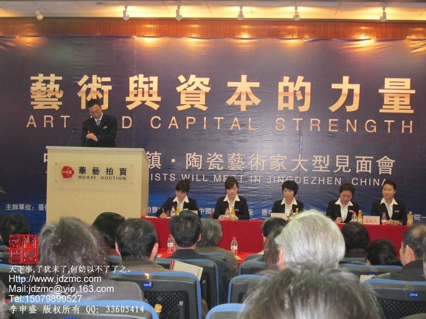 华艺拍卖公司的亮相,是此次会议的焦点。据了解,华艺拍卖公司于去年7月落户瓷都景德镇,是专业经营现当代艺术陶瓷拍卖的拍卖公司。景德镇一千多年来深厚的陶瓷文化底蕴,致使陶瓷原产地中心这一概念深入人心,尤其是艺术陶瓷的发展,更具得天独厚的优势。然而此前在全国范围内还没有一家专门致力于艺术陶瓷拍卖的拍卖公司。面对市场缺位,华艺悄然登陆瓷都,主推艺术陶瓷拍卖原产地运营概念。