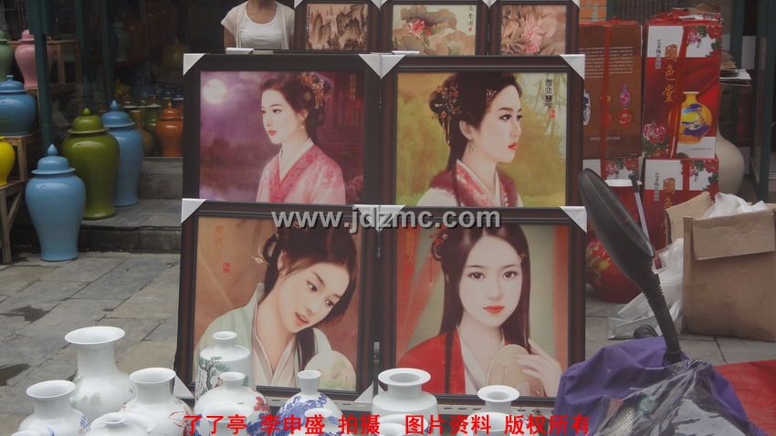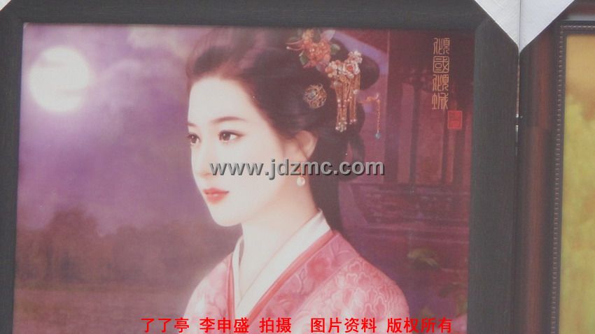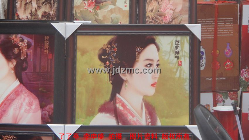 这几块瓷板代表了现在已经较为成熟的转印技术的成果,新彩,无马赛克效果,肉眼粗略检查的时候看不到贴花的网状纹。 但分辨的方法还是比较容易的,瓷板上面每一个人物的线条没有笔触,就连亭台楼阁,花草树木都没有笔触,特别是款识也没有任何笔触。这样的瓷板作为装饰可以,但是不排除有人拿它去忽悠消费者,所以先在这里给大家提个醒。