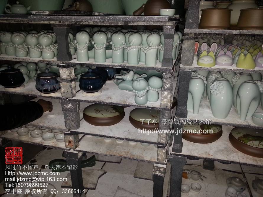 傻小孩做的陶泥茶壶,几十把茶壶,接头没有处理好,把子全掉了。而且盖子变形,很难敲开。我本来想拿一个自用,可是敲了半天,盖子好不容易开了,也给敲阕了。敲阕的原因是壶身和壶盖变形收缩不一致。