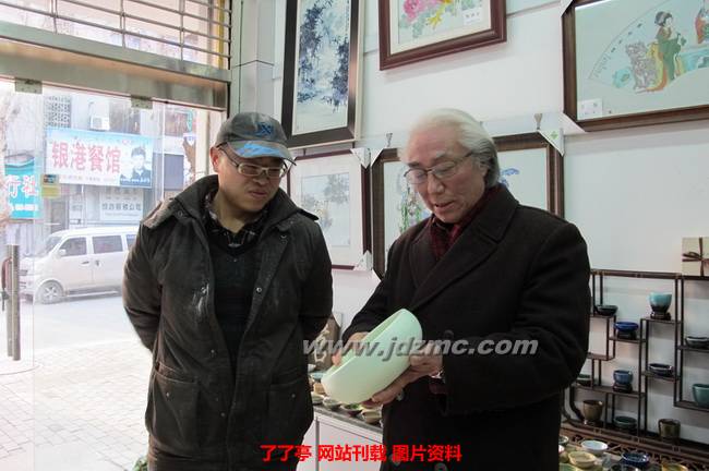 因为年前在作坊里面做订单,这做成型的事情,就是和泥巴打交道,再干净的衣服,再注意也会弄得一身的灰,一天下来和个灰老鼠没有什么区别。所以,一天中间有外联的事情的话,常常我是满身灰尘到到老师家去做客,或者和老师们商谈事情。我呢,也不讲究,身上也不拍拍,也不梳理干净,就这样一身土的流窜过去。结果,很多老师对我是“敬而远之”。举手投足之间,总是离我远点,呵呵,这也不怪老师们,人家一身光鲜的,稍不留神,就会给我擦上白白的一片痕迹。但是,也有老师毫不在意的,比如戴荣华老师,他来店里面玩,我请他给我的颜色釉陶瓷做形象代言人,戴老师欣然同意,同时和我交谈很多关于颜色釉的认识。在这个过程中,戴老师很慈祥,听我手舞足蹈的,也不躲避,即使不小心擦上了戴老师的衣服,戴老师也不在意,甚至拍都没有拍一下,这是一种慈祥,更是一种对晚辈的关怀。了了亭 李申盛/文