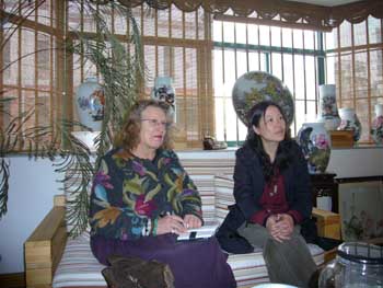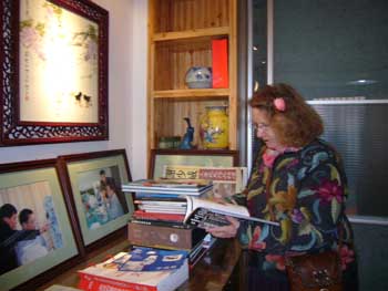卡拉·卡奇与黄润娟女士接受采访 她,不是景德镇人,她是一个外国人,一个美国人,但卡拉·卡奇一听到别人说她是美国人,就会大声说:"我是中国的美国人。"现在如果还有人说同样的问题,卡拉·卡奇会用中文大声说:"我是中国景德镇的美国人。"因为就在2008年3月6日,景德镇市政府向这位十年致力于景德镇陶瓷文化的交流与弘扬,热衷于景德镇公益事业的美国友人--卡拉·卡奇女士颁发了一张景德镇荣誉市民证书。 卡拉·卡奇女士,一位来自于美国纽约州立阿尔弗雷德大学的教授。1998年,应景德镇陶瓷学院黄焕义教授的邀请,卡拉·卡奇女士第一次来到中国,来到景德镇作短期义务讲学。从此,她便与这片土地结下了一段十年不断的深厚情缘,也让卡拉·卡奇深深地融入了这座城市--瓷都景德镇。 一位中国老教授让她结识瓷都 今年64岁的卡拉·卡奇,从1998年开始每年都会如期的从纽约飞来的景德镇,即使是在2001年美国纽约发生9·11事件和2003年父亲享利·梅林格的去世也阻挡不了她的行程。什么力量让一个外国老人如此着迷一个中国的江南古镇,着迷于瓷都? 这缘于一位中国的老教授,他的名字叫施于人,那是在1996年,从事陶瓷研究的卡拉·卡奇女士无意之中看到施于人教授的作品,这些来自遥远东方的陶瓷艺术作品让她惊讶不已,特别是用蜡染这种民间工艺结合到陶瓷创作上来的风格,让她感觉确实是一非常了不起的创意。从此,卡拉便开始有意识地收集这位中国老教授资料,随着从文字上对施于人教授了解的越多,渐渐地她被这位中国老教授一生坎坷的经历和无私淡泊的品格深深地感动了,这也让她对景德镇渐渐地产生了兴趣。或许源于此,卡拉·卡奇非常想亲眼见识一下这位传奇一生的中国老教授。 很巧的是1998年景德镇陶瓷学院邀请卡拉·卡奇来景作短期义务讲学,接受邀请卡拉·卡奇来到景德镇后便开始寻访这位中国的老教授,然而不幸的是施于人教授已于1996年离世。在景德镇日子里,每当她问到身边的朋友有关施于人教授的事时,更让她惊讶的是每一个人都对他非常的崇敬,很多人向她讲述了许多这位中国老教授一些鲜为人知的故事。这位曾培育过秦锡鳞、张育贤、戚培才、彭竞强、郭文莲、钟莲生、张学文众多艺术大师的老教授,立体地站在了她的面前,他不仅是一位优秀的艺术家,一位真正的学者,更是一位历经磨难却从不放弃的老教师。 卡拉·卡奇正在翻阅陶瓷书籍 卡拉·卡奇告诉自己,作为一个教师,她有责任让更多的美国人了解施于人,了解瓷都,了解中国的文化。随后几年里她不断地来到瓷都,拜访了施于人教授的生前好友及家人,经过她的努力2004年成功举办了《施与人与其第一代七个弟子作品展》,引起了强烈反响。卡拉·卡奇还将在2008年11月在北京,中国文化部艺术研究院举办《施于人先生个人作品回顾展》。