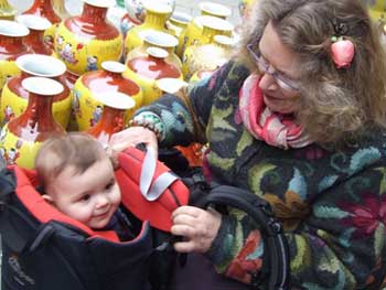 卡拉·卡奇与她六个月的小孙女在景德镇 正是因为卡拉·卡奇怀着那份真挚的爱,不断地解读着瓷都的历史,推广景德镇的陶瓷。特别是获得荣誉市民称号后,卡拉·卡奇表示非常荣幸。她说,景德镇这座城市有一种特殊的魅力,让人去亲近,去爱。当有朋友问她是否会收藏景德镇瓷器时,她说,我收藏的是故事 |