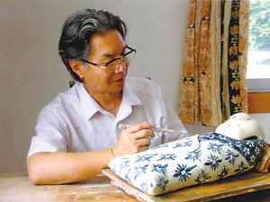 答:我的童年是在民间艺术的熏陶中度过的,家乡的皮影戏、奶奶做的糯米鸡、妈妈做的虎头鞋,都给我留下了深刻的印象,孕育了我崇尚稚拙、洗练与夸饰的审美意识。经过六年美专和中央美院的严格训练,西方古典美术的严谨写实又在我的艺术追求中扎下了根。毕业后我被分配到瓷都轻工业部研究所,第一批作品《弹弓手》、《迎春》、《饲养员》、《摇篮》,都带有民间艺术和西方古典美术的烙印。这对当时观音、罗汉像一统天下的陶瓷艺术是个不小的冲击,当时我才23岁。