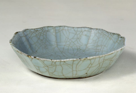 玫瑰紫釉海棠式花盆托 【汝瓷】宋代“五大名窑”之一,为冠绝古今之中国磁器名窑。窑址在今河南省宝丰县清凉寺,宋时属汝州,故名。釉色主要有天青、天蓝、淡粉、粉青、月白等,釉层薄而莹润,釉泡大而稀疏,有“寥若晨星”之称。釉面有细小的纹片,称为“蟹爪纹”。