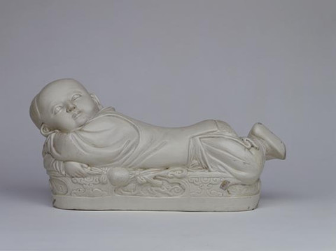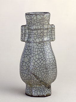 孩儿枕 【哥瓷】宋代“五大名窑”之一,这里所说的哥窑是指传世的哥窑瓷。其胎色有黑、深灰、浅灰及土黄多种,其釉均为失透的乳浊釉,釉色以灰青为主。