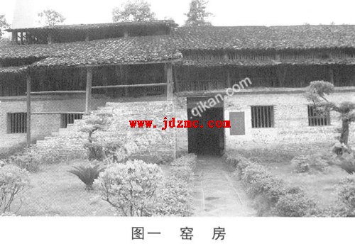 窑房平面呈矩形,长为42.92米、宽19.97米,单层檐口,上部采用木栅围隔,保持良好的通风状态,利于木柴干燥及通风散热。一层用于装匣、开窑、选瓷之用,二层柴楼主要用来贮备松柴。楼面在窑门前的位置有一闸口,松柴通过闸口即可滑到窑前,以节约烧炼时搬运材料的时间和劳力。二楼后部还有窑工的住房和厨房,窑房内还布置有窑工洗濯的浴室和管理账房(图一)。