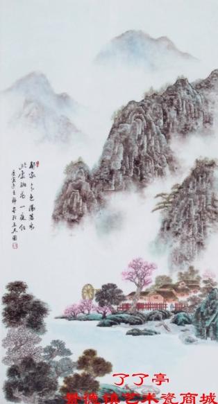 图为:《此处桃花一片红》粉彩·王静(陶瓷美术教师.陶瓷世家)