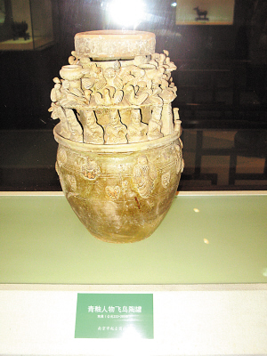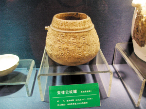 展室中展品不多,而且显得非常可怜,完整器为数不多,看到的多是修复的残件,有的一个罐子,通体全是白色的石膏,支离破碎地镶嵌着几块瓷片。记者有拍自天津那位收藏家所藏原始青瓷的图片,比较柜中的展品,发现虽不形同,但却非常神似。古人制瓷,手工作业,创作凭灵感,往往一器一形,难有完全雷同的作品。但其工艺制作的水平和方式,艺术表现的手法和风格以及制瓷的理念和思想,全都以其特定的符号注在那一时代的作品中,仔细看,会发现它们尽管形不相同,相通相似的地方却有很多。