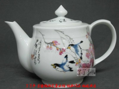 图为:王安维 粉彩“紫藤飞鸟”茶壶