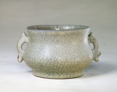 【哥瓷】宋代“五大名窑”之一,这里所说的哥窑是指传世的哥窑瓷。其胎色有黑、深灰、浅灰及土黄多种,其釉均为失透的乳浊釉,釉色以灰青为主。