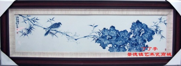 图为:“寒竹憩禽”·青花·王亮(陶瓷美术专业研究生,高级工艺美术师)