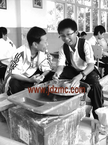 就在米老鼠对高飞说这段话之前,后者正在为未能掌握出色的风景绘画、陶艺制作、自画像等技艺而烦恼。就在10月18日下午2时40分,类似的一幕出现在景德镇市青少年校外活动中心(陶艺基地),来自市一中分校(景德镇市第十三中学)的数百名学生正在此地参加陶艺体验活动,一名年约14岁的小女生正为无法将泥坯拉成碗状而急得面红耳赤。