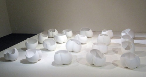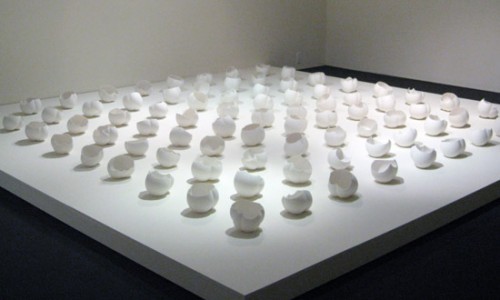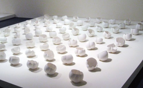上万个孵得很作秀的鸡蛋皮??第一眼看到的时候,很多朋友都向优品抱怨说着艺术咱看不懂,就是一堆一堆的鸡蛋皮嘛~不过优品却坚持认为它是做得超级薄的骨瓷杯子~恩,其实这是Ryota Aoki的陶瓷作品—bijoux,但是作者也没能告诉我们他到底是做什么用的—不过老师曾经说过:不要拿世俗的眼光看待艺术,看不懂那就是你没进化好!…不过优品着实喜欢这些看上去很诡异的小东西,它们最近在纽约的ippodo画廊上展览过~陶瓷作品所用的粘土是Ryota Aoki精心配置而成滴^_^
