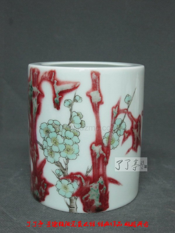 色釉斗彩,还有一些在色釉瓷胎上加绘山水的画面,也有在色釉上加绘人物,与色釉块面相衬托。精细勾勒的树木、花鸟、人物,与高温色釉融为整体。色釉斗彩,只能在色釉瓷胎的空白处作画,不能在釉色上斗彩。空白处的绘画能清晰地显示同画面、线条、形象。如果在色釉上作画,烧成后只有模糊的画面,达不到斗彩瓷画的观赏效果。