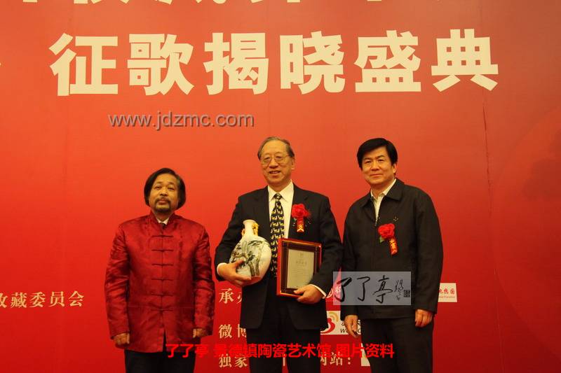 著名国学大师文怀沙(中)、中国文物学会名誉会长罗哲文(左)为2011影响中国收藏界十大人物之一阎正颁奖.JPG