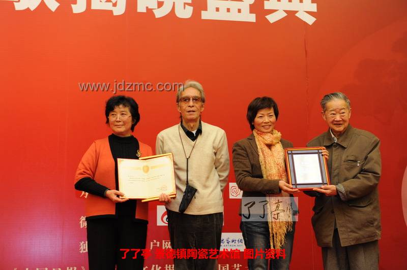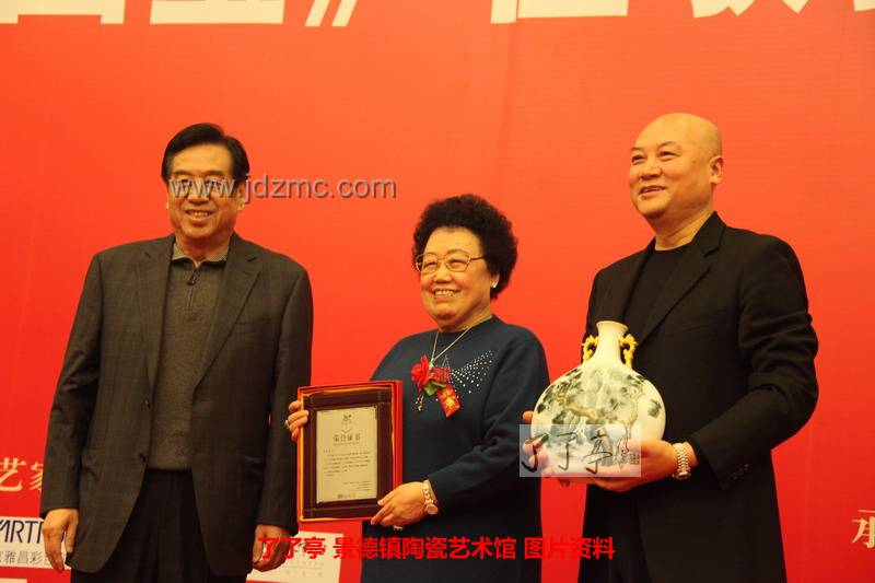 2009影响中国收藏界十大人物陈文增(左)、中国文联党组副书记、副主席李屹(右)为2011影响中国收藏界十大人物之一张正颁奖.JPG