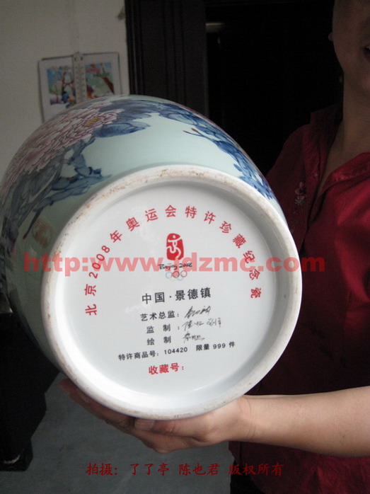 在奥运特许纪念瓷景德镇板块中,秦胜照所参与绘制的应该说是很正规的,是得到正规批准的纪念商品,相比之下,其他在疯狂炒作的一些所谓的奥运纪念瓷大多没有得到准许和备案批注,只是打一种意义上的擦边球。
