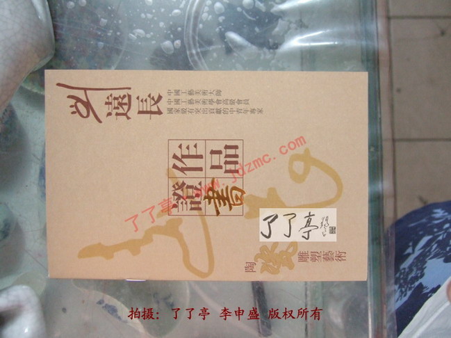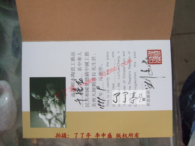 如图1和1.1证书上可见千禧龙作品是在1999年9月创作,这个创作的概念了了亭有必要解释一下,证书上的1999年9月创作是指那个时候将第一个千禧龙制作了出来,而不是这一件作品是1999年9月制作的。证书上可见刘远长的印章、签字和作品名称均为手写。