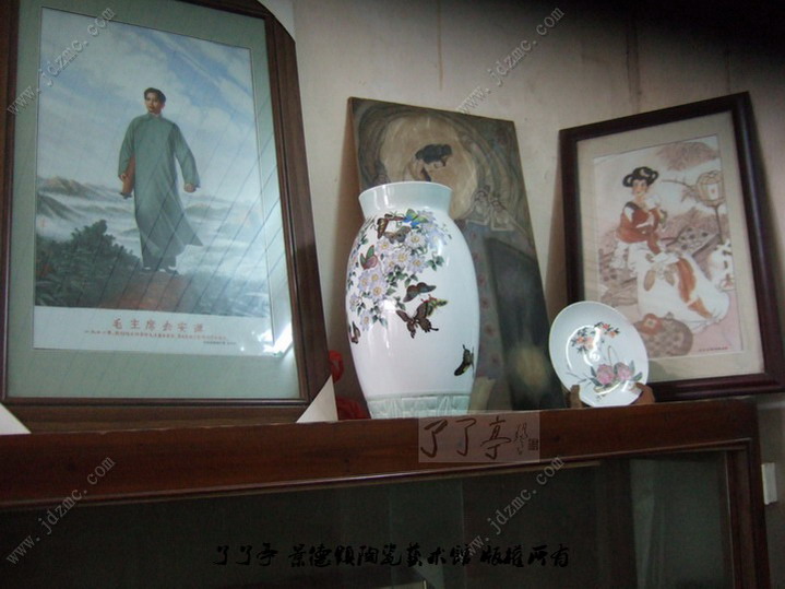 这里是一段本站一篇文章中的资料(/Article/Class22/Class23/Class26/11040.html 被人遗忘的瓷画像大师吴康),值得您阅读一下。 吴康的小儿子、儿媳是了了亭的好朋友,今天笔者去龙珠阁参观,由于没有带身份证没有进入,所以就到吴康的夫人邓启贤的龙珠轩去坐了一下。 因为邓启贤奶奶的耳朵不好,所以没有深入的聊,只是拍了拍照做了个留念。龙珠轩现在只是一个普通的小画室了,邓奶奶是一个念旧的人,舍不得这个地方,平常有保姆照顾,另外还有一个学生在这里学习一下画画,室内很凌乱,架子上放着的都是学生的作品。这里没有任何吴康的作品,也请行业的人不要去打搅她,90多岁高龄的老人了需要的是平静和祥和。 (原文章中的资料) 邓启贤老人今年已经94岁高龄,是吴康的第二任妻子,南昌人,出身于一个富商家庭。原名邓奇贤,解放后改名邓启贤。 邓启贤小名曼丽,对于一个出生于1915年旧社会的女子来说,这是一个洋气十足的名字。 而曼丽本人就如她的名字一样,美丽浪漫,年轻时更是不可方物-坊间传言,她曾是南昌交际场上赫赫有名的四大名嫒之一。邓眉贤自己介绍说,年轻时她曾在南昌交通厅工作,是当时的二十一级干部(相当于现在的副科级)- 邓启贤,一位九十多岁的老人,当她因腿脚不便只能整日坐在轮椅上时,她的神采气质却依然足以照亮这栋显得有些陈旧的老宅。 老人家尽管行动不便,还有些失聪,但是她的记忆力和反应速度经常敏捷到让记者吃惊。 聊天中,记者还了解到一个有趣的故事,在四川内江,邓眉贤曾经被国民党爱国将领冯玉样收为千女儿。 1943年,邓眉贤在四川内江开了一家画室,那年洪水泛滥,冯玉样被滞留在内江边上,恰好借宿在邓启贤家,“整整12天,他在我家还画画,画白菜,画在茶杯上。”邓眉贤操着一口浓重的南昌口音回忆说。 临走时,冯玉祥认下了这个聪明大方美丽活泼的干女儿。 “冯玉徉遇难后,他夫人还派人找过我,希望带我去北京工作,但我没有去-” 在幸福中离去 邓启贤和吴康的相识源于师徒关系。1939年到1940年,邓启贤拜吴康为师学画瓷画像,交往中两人暗生情愫。 但是,当时的吴康已经结婚了。 1936年,吴康娶了当时的社会名流江梦九的女儿江村为妻。两人结为伉俪后,生下了三个儿子一个女儿,女儿排行老二。 江村非常贤惠,不仅是吴康生活中的贤内助,还是吴康事业上的得力助手。但是因为不幸患上子宫癌早旱离世。 “她忍受了整整8年病痛的折磨。离开的时候留下4个儿女,最大的18岁,最小的只有3岁。”邓启贤说,“她一直都知道我和吴康的感情,临终时写下遗嘱,请求我嫁给吴康,帮忙照顾她的几个儿女。我那时也是单身.就这样嫁过来了,那是1958年。” 邓启贤带着老母亲嫁到景德镇后,除了照看家庭,也一直从事瓷画像创作,并取别号“大可山入”,这成了她所有陶瓷作品的唯一落款标识。 上世纪80年代,邓启贤还在聋哑学校担任过老师,会手语,因此,她和吴康的徒弟中,还有几位是残疾人。 吴康和邓启贤婚后非常恩爱。而邓启贤对吴康的四个儿女也视如己出。“到后来.他们部待我像亲娘一样,感情很好。” 据说,吴康在弥留之际,邓启贤整整40多天没有上过床,没有睡过一个完整的觉,一直在他身边照顾。吴康的子女在父亲临终前询问他是否有什么遗嘱,吴康表示,没有什么遗嘱,有什么事问你们妈妈就好了。然后在邓启贤的脸颊两边各亲了一口,安详离开人世。 失落的龙珠轩 吴康的四个子女,老大取名吴小康,退休前一自在南昌外贸局工作;老二吴锦丽,曾仟广东梅县瓷局局长;老三叫吴可,曾在五二三厂从事销售业务,后迁至上海定居;小儿子叫吴锦华,一直在广东从事陶瓷创作,2007年被评为“中国工艺美术大师”: 吴康的四个子女中有两人继承了父亲的职业,但是,邓启贤老人现在有一块心病,就是至今四个子女中没有人回来继承父亲的衣钵和吴家的产业。四个子女分别于上世纪70年代至90年代陆续离开景德镇到外地发展,昊家今天已经没有后代留在景德镇。 “我当然最希望小儿子回来接班,他是最适合的人选,我是年年望,天天等。” 除了吴家的有形资产,邓启贤最放不下的还是“龙珠轩”这块招牌。位于龙珠阁斜对面的“龙珠轩”创立于1986年,是邓启贤的心血之作。“龙珠轩”既是吴家的家宅,也是一间临街的店铺,二者合而为一:走过20多年风雨的“龙珠轩”,也算是景德镇人耳热能详的一块老招牌了。 现在的“龙珠轩”已经不再公开展售吴康的作品了,主要陈列的除了邓启贤自己的陶瓷作品外,其他大部分是徒弟雷毅和毕菊香创作的瓷画像。作为邓启贤老人的关门弟子,毕菊香至今陪伴在老人家身边,十多年时间,她每天都会来“龙珠轩”。