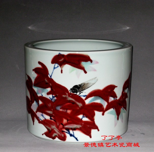 “知音”·青花轴里红斗彩·彭竟强(江西省工艺美术大师) 大小:150件.高.23cm.直径.27cm 这是一件很漂亮的青花釉里红斗彩作品,我对青花釉里红是情有独钟的,此件作品釉里红发色浑厚鲜红,窑变自然美丽。对彭竞强大师的"知了"也是情有独钟的.我看过很多很多瓷画的"知了",像他的那样精准、细腻、活灵活现好像没见过.朋友们见到没有不叫绝的.这件作品是去年秋守到的,从他同类作品中精造了三件.二个很快就给了朋友了.这一件当时也不急着卖了,因为要拿到一个我自巳满意的青花釉里红作品太不容易了.但是总得有好作品展示呀.总得让收藏界了解这位老大师呀. 下面一段文字是我上去年底介绍彭老师青花釉里红写的.今天借用如下: 每年秋天,彭竞强老师总能收获一些好的釉里红作品.他说他的釉里红料只有在秋天的特殊气候条件下才能窑变出很特别的色彩来.所以,我每年秋天就守彭老师的釉里红斗彩的作品.还有,我特别喜欢他画的知了.非带传神,精细之极,像是活的,仿佛您手一碰他就会飞得无影无纵.无形之中,我每次去摸那知了时,总是特别小心.生怕它跑了似的.就像儿提时到野外去捉知了一样. 前不久.怀着一种不要落空的愿望,和儿子一起驱车到他那远郊的别墅.一进门就劈头劈脸地问为我们开门的彭夫人,等她楞过神笑嬉嬉地说"好像有.问老倌去"景德镇妇女称丈夫叫"老倌".但老倌出不来,我们直奔他的工作间,诺大的一个房间只有他一个人,弓着背正在紧张地往一块瓷扳上填玻璃白,大片的荷叶一定要一气呵成地填完,否则就会出问题.看着这位老艺术家的背影,我心里有点酸楚,彭老师没有进入国大师行列,我和我的许多朋友,很为他打抱不平.他的水平,资格.本应立身于国家级大师的行列中,她的挚着,认真,诚实,品德,绝对是站在前列的,他的作品,每一笔,每一划都是他自己亲为.真的.是非常地敬佩这样诚实的、真正的艺术家.我想在这大浪淘沙的市场规则中,慢慢的.会有分晓的.真的总是真的,好的总是好的.我坚信:善有善报!我拿出了相机,把这一刻记了下来. .彭老师是一个多才多艺的老艺术家,热爱陶瓷艺术,一辈子不停的探索,研究,创作.他不善操作,公关.却精于艺术.他的作品水平,得到景德镇陶瓷艺术界的公认,也得到收藏界的首肯.他的精品,收藏家们争相得到.他的人品,被大家称道.彭竞强大师为景德镇陶瓷学院粉彩班第一批学员.师从余翰青,欧阳光.施于人等一代名师,对于艺术的领悟,和孜孜不倦的勤奋,艺术家特有的执着,使彭大师作品总能给人耳目一新,眼前一亮的感觉.独具一格, 这次没有扑空,拿到了几个好漂亮的青花釉里红斗彩.一个巳经给了朋友,一个在这儿展示.是智是仁,朋友们自已欣赏吧 |