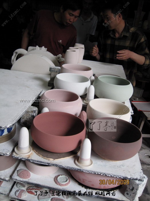 当您抱着一个喷了釉的泥巴坯您会有什么感觉,告诉您,就像抱着一个刚刚出生的婴儿一样的那种感觉。呵呵,这种感觉好吧。这种感觉我在3年前有过,小心翼翼的,生怕把它那里碰到了,那份真爱来源于对它未来的期待,对成品无限的希望。 今天是8个钵的满窑,还是搭烧,这一次要的中上部位,应该这里效果会好一些,明天下午2.3点就能看到效果。我骑着一个电摩托车,一次带两个钵,一共来回跑了6次,才全部运完,其中包括运泥板两次。等把东西集中了,满窑的时间就显得很漫长,等满到我们的这个地方已经等了一个多小时了,老板不停的计算着最大使用面积,在里面见缝插针的加入需要烧制的东西,有试片也有各种首饰小件。在等待的两个多小时里面,我坐在那里思考着这样一个问题。 景德镇的四大名瓷现在还剩下什么?这句话好像说的不对,应该说在收藏界大家对四大名瓷还有多少感情?粉彩?这个还在,只是因为它和画联系紧密。玲珑?这个沦落到日用瓷上了。薄胎,展销会上多,现在还有多少人收藏?颜色釉?市场衰退的一塌糊涂,很多品种因为市场的萎缩已经绝迹。 不说不知道吧,景德镇艺术陶瓷四大名旦花开花谢正常吗?不正常,一千年来景德镇是工艺上的不断进步才造就了瓷都的辉煌,才成就陶瓷的世界地位。其间,各种工艺技术的不断研发,各种新兴品种不断涌现,才使得陶瓷之树千古常青。可是在现在我们涌现的是什么?画派!一个个的画派正在日新月异的漂出来,这彩那彩,还不都是粉彩新彩,这釉那釉还不都是颜色釉。 记得有个词,一花开,百花煞。过度重绘画而轻工艺,只会让景德镇陶瓷跛腿走路。中国这么多制瓷产区,那些东西不能画,那些彩一定要来景德镇才能搞。景德镇艺术陶瓷能够和其他制瓷产区最大的区别,就是自己的研发和技术实力,而绝非依靠自己的绘画实力。青花、釉里红、斗彩、粉彩、新彩、珐琅彩、古彩、单色釉,可能还有我没有想到的,这一些都是什么时候发明的?好像截至在民国前吧,那么近代,现代,我们在干什么? 薄胎瓷,这个工艺上的进步成就的特殊种属,它是是器形的千古绝唱,结果到现代被灌浆的东西取代了。 珠山八友嘛,将西方绘画技术引入到了陶瓷造就了一个奇迹,其实,八友的奇迹是八友后人们创造的,后人不好,也许又换了话题。 贴花嘛,好像陶瓷艺术就会干这个了,什么画面都来个贴花,卖的越多,赚的越大。 7501,这个倒是技术的奇迹,因而流芳百世,不为什么,后人不好仿制啊。 那还有什么?陶艺,综合装饰,似乎涵盖了绝大部分的出路,也是教育的主题课程。 我们看到了多少有技术含量的东西,没有多少,大家都忙不丁的去搞绘画去了,结果青瓷系独树一帜的走了出来,看来这个时代还是非常注重工艺的重要性,而为什么景德镇却对单色釉系抱着无所谓的态度,个人觉得,只是景德镇的东西太多了,硬资产太富有了,很多东西丢不丢的无所谓,也务虚去保护,也没有必要去保护。