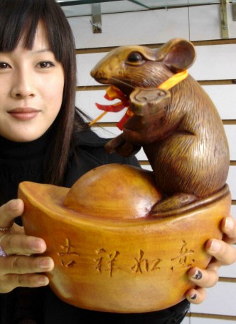 我看历来关于老鼠的雕塑题材太有限,比如一个老鼠抱着鸡蛋,另外一个老鼠拉着它尾巴拖着走的形象;或者是几只老鼠坐在钱袋上,几只老鼠拉钱袋走;还有的就是如意、元宝和老鼠搭配。等等,等等。这些产品的创作,完全是应景的作品,到不是作者应景,而是作品就是为了应节庆这个景。反正,我只会送送人,但不会把这些作品放在我的卧室里面的。